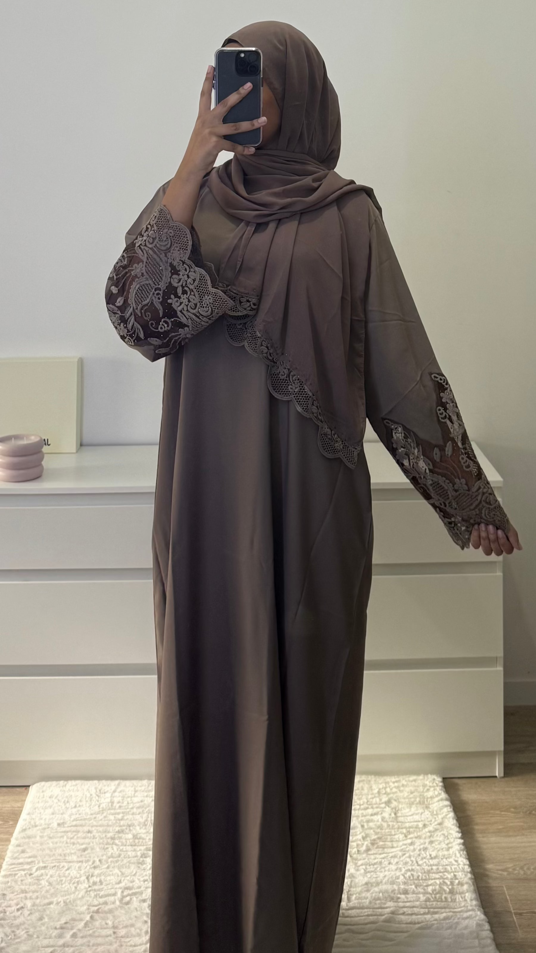 Découvrez notre élégante abaya, conçue pour allier confort et style. Fabriquée à partir de tissus de haute qualité, cette abaya fluide est parfaite pour toutes les occasions, qu'il s'agisse d'une sortie décontractée ou d'un événement spécial. Son design ample et sa coupe flatteuse offrent une liberté de mouvement tout en respectant les principes de modestie. Disponible dans une variété de couleurs et de motifs, chaque pièce est soigneusement ornée de détails raffinés qui ajoutent une touche de sophistication.